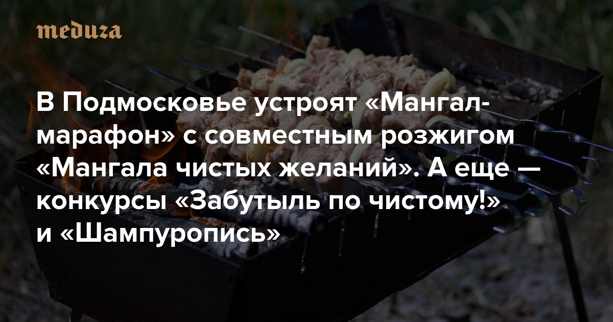 В Подмосковье 17 августа устроят «Мангал-марафон» с совместным розжигом «Мангала чистых желаний» А еще — конкурсы «Забутыль по чистому!» и «Шампуропись»