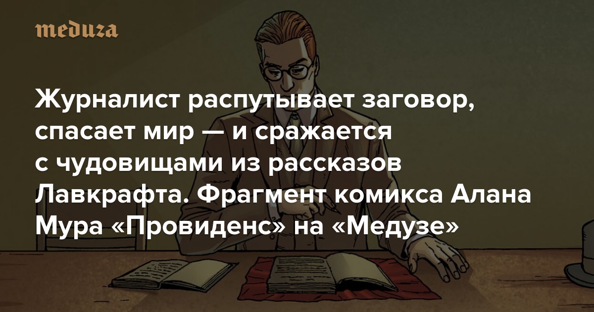 В конце сентября издательство fanzon выпускает мрачный графический роман «Провиденс», написанный автором «Хранителей», «V — значит Вендетта» и «Лиги выдающихся джентльменов» Аланом Муром. Этот комикс — оммаж Говарду Лавкрафту, его мифологии и философии. Уже в названии зашита отсылка к Провиденсу, его родному городу. Действие происходит в 1919 году, главный герой романа — журналист Роберт Блэк — путешествует по Новой Англии и сталкивается с чудовищами из рассказов Лавкрафта. Вскоре Блэк понимает, что оказался невольным участником заговора, который ему только предстоит раскрыть. «Медуза» публикует фрагмент «Провиденса».