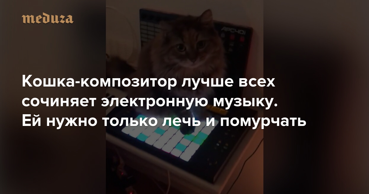 Пользовательница твиттера под псевдонимом qrtrmusic пишет электронную музыку с помощью специальной MIDI-клавиатуры Ableton Push. Это устройство позволяет на лету сочинять композиции, чем и воспользовалась кошка qrtrmusic. Животное уселось (а потом улеглось) прямо на клавиатуру и принялось импровизировать. Кошка вплела в звучащую музыку и собственное довольное мурлыканье — и, судя по всему, прославила хозяйку. qrtrmusic выложила запись в свой твиттер. За день видео с музицирующей кошкой посмотрели почти три миллиона раз.