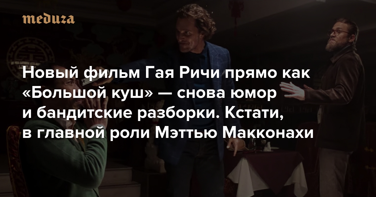 Новый фильм Гая Ричи прямо как «Большой куш» — снова юмор и бандитские разборки. Кстати, в главной роли Мэттью Макконахи