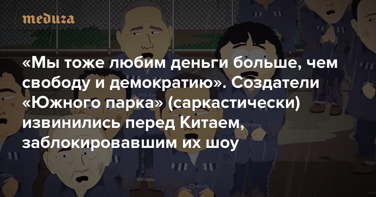 «Мы тоже любим деньги больше, чем свободу и демократию». Создатели «Южного парка» (саркастически) извинились перед Китаем, заблокировавшим их шоу