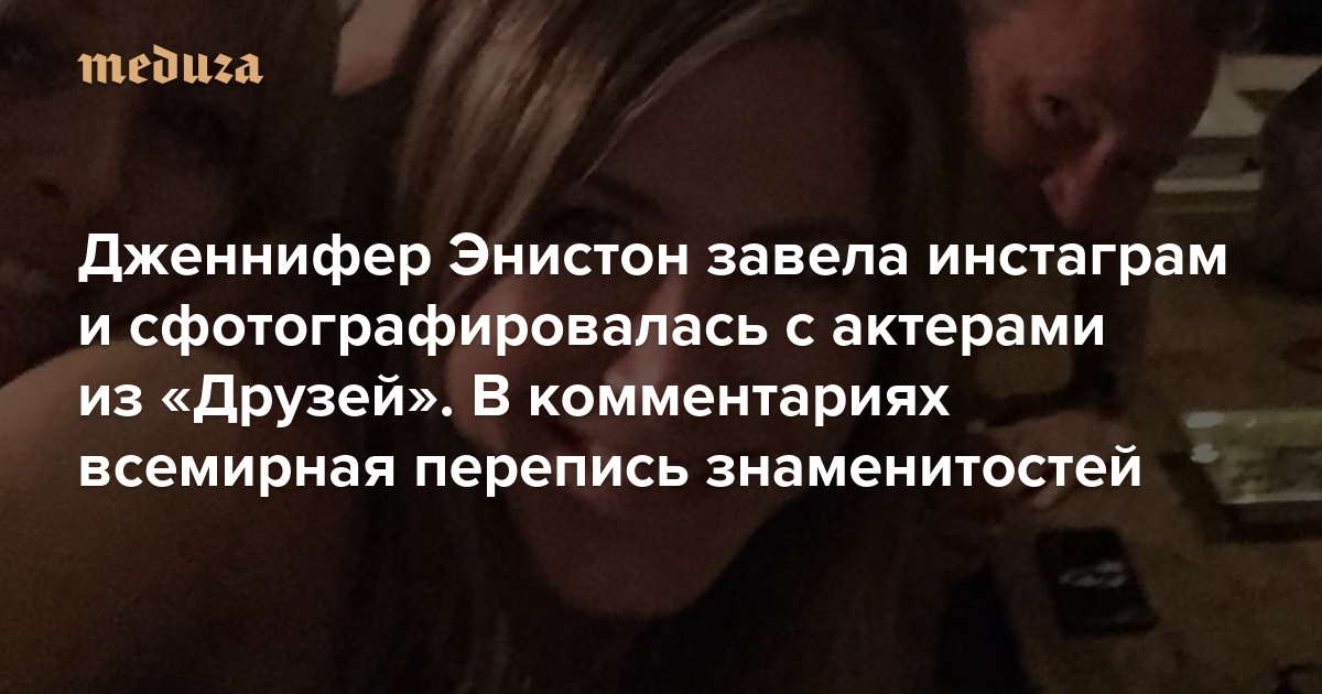 Актриса Дженнифер Энистон завела инстаграм и выложила первый пост — селфи со своими коллегами по сериалу «Друзья»: Лизой Кудроу, Кортни Кокс, Мэттом Лебланом, Дэвидом Швиммером и Мэттью Перри. «Теперь мы еще и в инстаграме друзья. Привет, инстаграм 👋🏻», — написала Энистон. У актеров выдалось свободное время и они собрались на ужин дома у Кортни Кокс и сделали совместное фото.