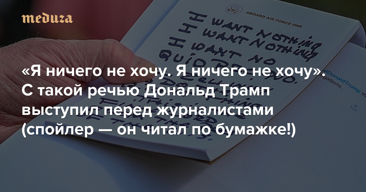 «Я ничего не хочу. Я ничего не хочу». С такой речью Дональд Трамп выступил перед журналистами (спойлер — он читал по бумажке!)