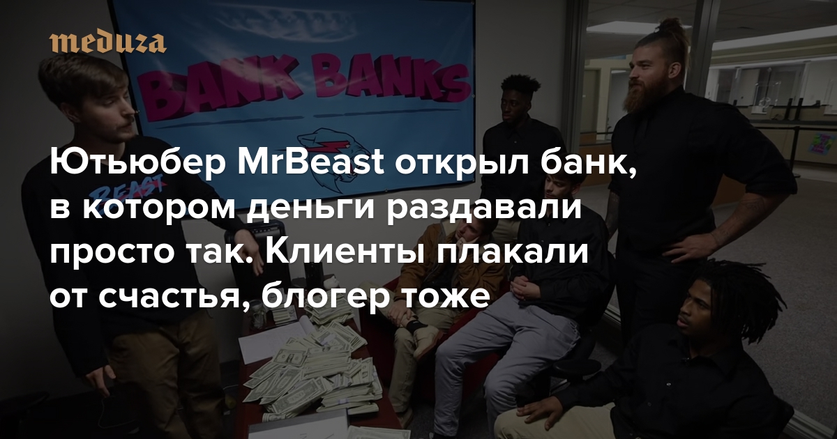 Ютьюбер MrBeast открыл банк, в котором деньги раздавали просто так. Клиенты плакали от счастья, блогер тоже