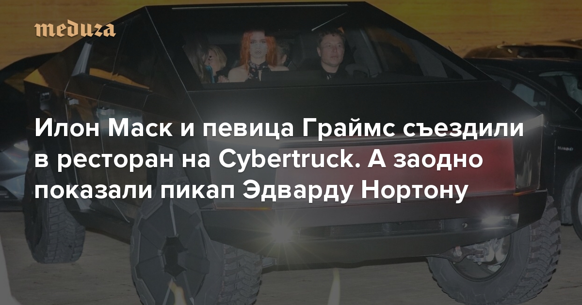 Илон Маск и певица Граймс съездили в ресторан на Cybertruck. А заодно показали пикап Эдварду Нортону