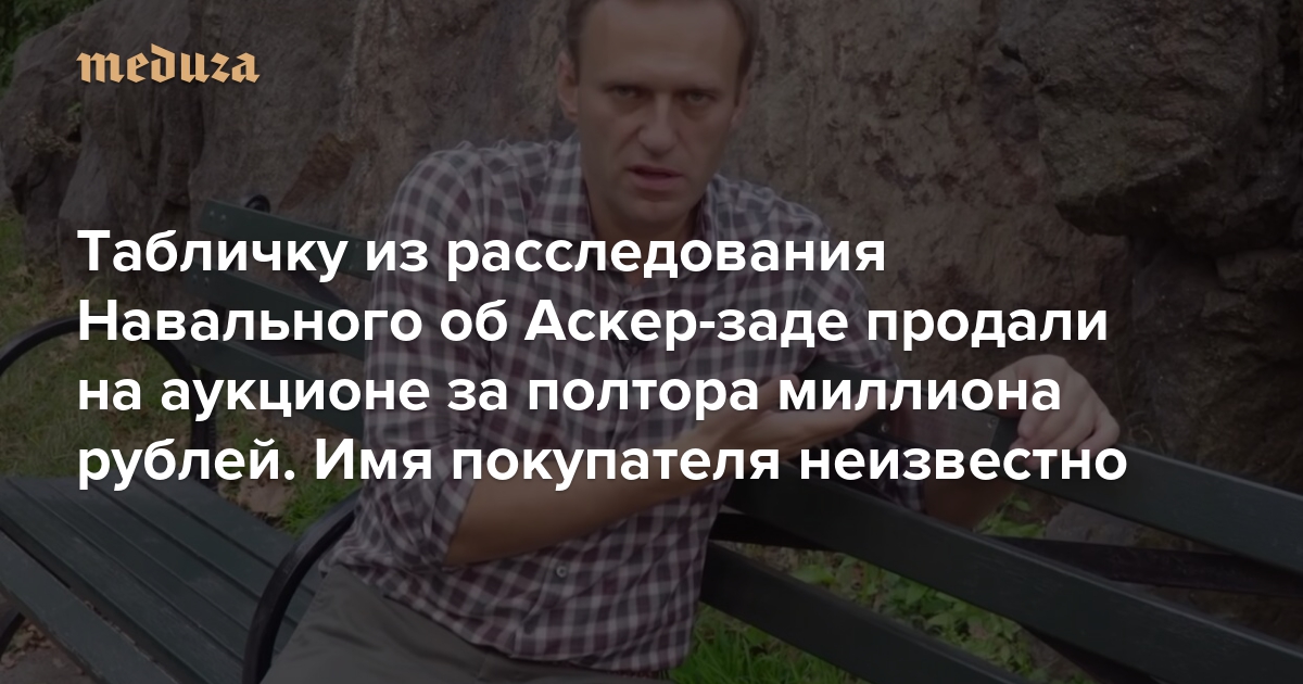 Табличку из расследования Навального об Аскер-заде продали на аукционе за полтора миллиона рублей. Имя покупателя неизвестно