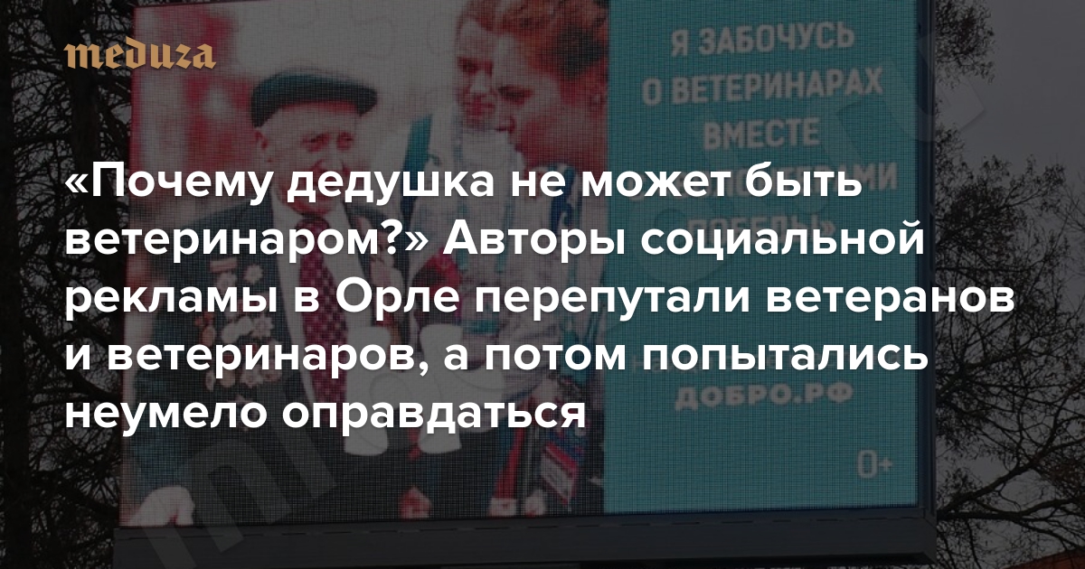 «Почему дедушка не может быть ветеринаром?» Авторы социальной рекламы в Орле перепутали ветеранов и ветеринаров, а потом попытались неумело оправдаться