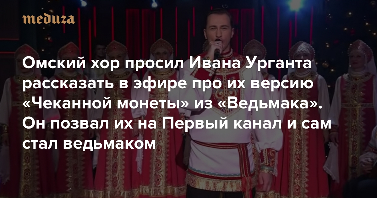 Омский хор просил Ивана Урганта рассказать в эфире про их версию «Чеканной монеты» из «Ведьмака». Он позвал их на Первый канал и сам стал ведьмаком