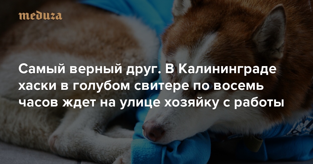 Самый верный друг В Калининграде хаски в голубом свитере по восемь часов ждет на улице хозяйку с работы