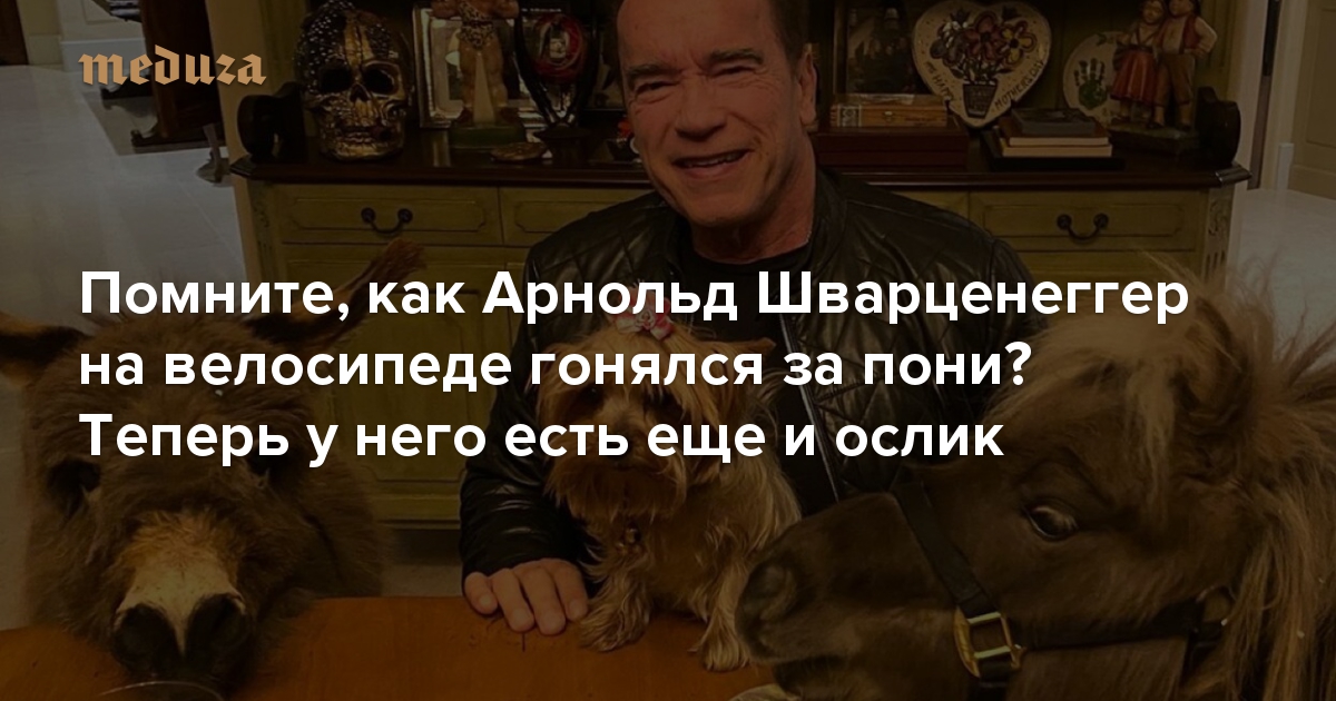 Помните, как Арнольд Шварценеггер на велосипеде гонялся за пони? Теперь у него есть еще и ослик