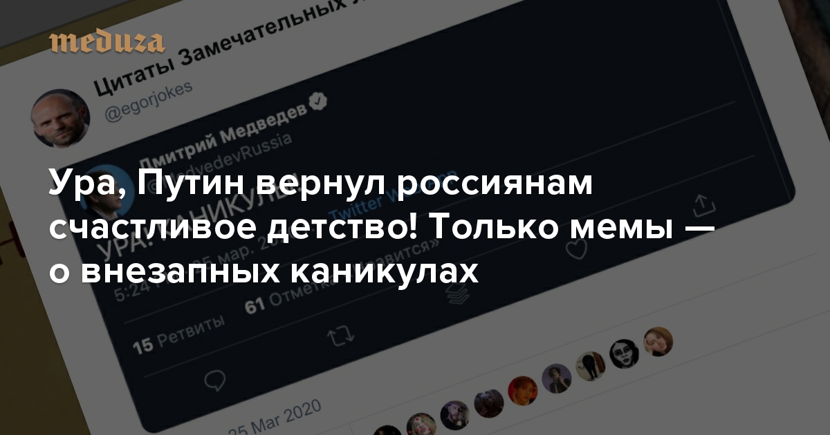 Ура, Путин вернул россиянам счастливое детство! Только мемы — о внезапных каникулах