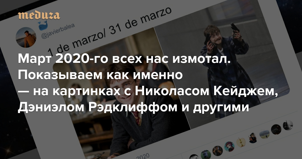 Март 2020-го всех нас измотал. 😡Показываем как именно — на картинках с Николасом Кейджем, Дэниэлом Рэдклиффом и другими