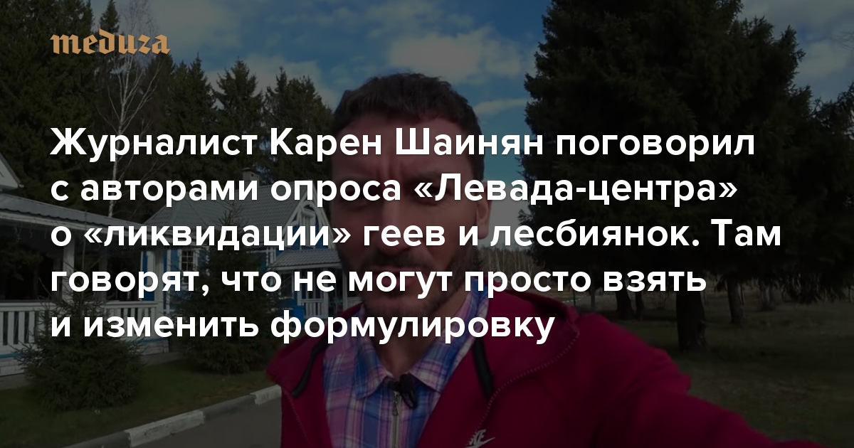 Журналист Карен Шаинян поговорил с авторами опроса «Левада-центра» о «ликвидации» геев и лесбиянок. Там говорят, что не могут просто взять и изменить формулировку
