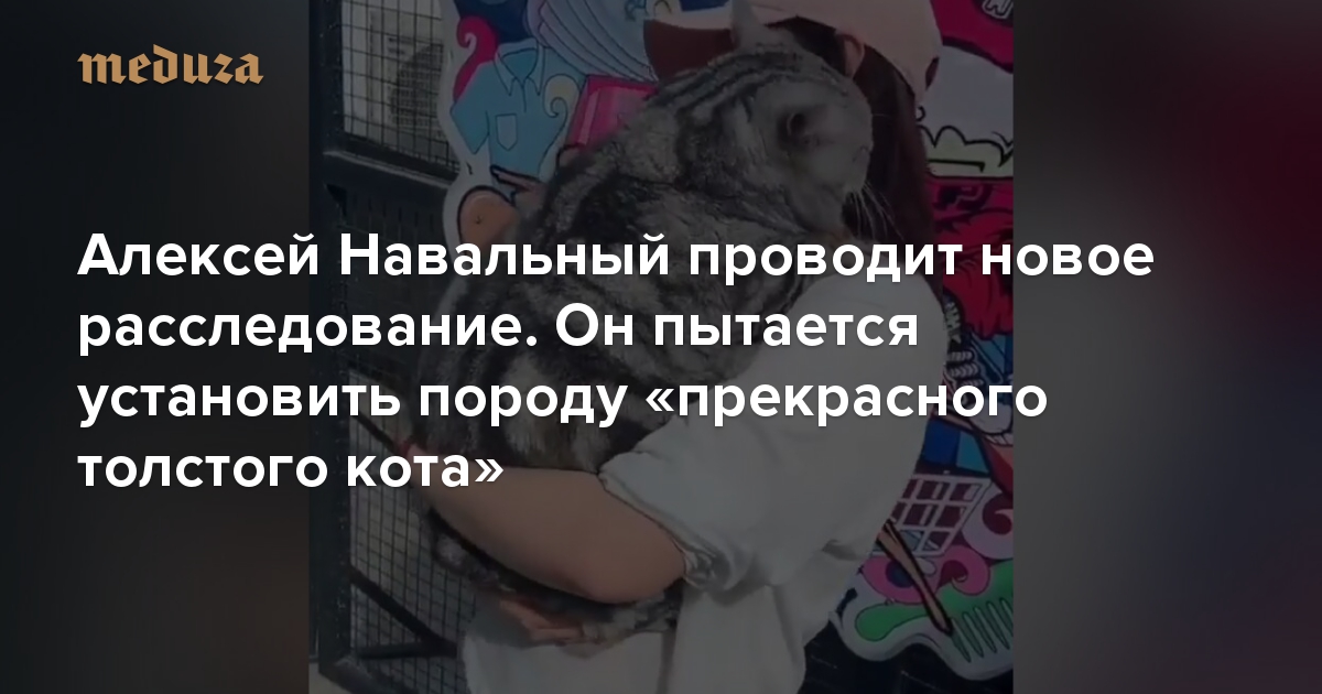 Оппозиционер Алексей Навальный постоянно выпускает расследования с разоблачением чиновников. Его Фонд борьбы с коррупцией изучает документы, использует дроны, отправляется в другие города и страны. Но есть кое-что, что не под силу выяснить даже Навальному — а именно породу упитанного серого кота, которого нянчат под музыку (а может, с ним просто танцуют). Чтобы прояснить ситуацию, оппозиционер обратился к своим подписчикам в твиттере.
