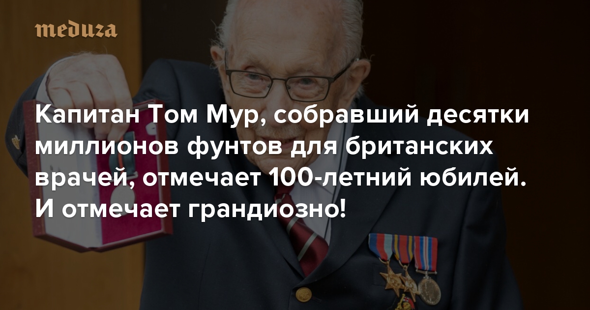 - С юбилеем капитана Тома поздравили главные люди в стране — королева Елизавета II и премьер-министр Борис Джонсон.