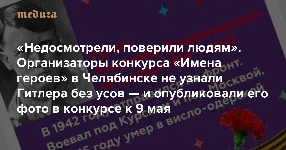 «Недосмотрели, поверили людям» Организаторы конкурса «Имена героев» в Челябинске не узнали Гитлера без усов — и опубликовали его фото в конкурсе к 9 мая