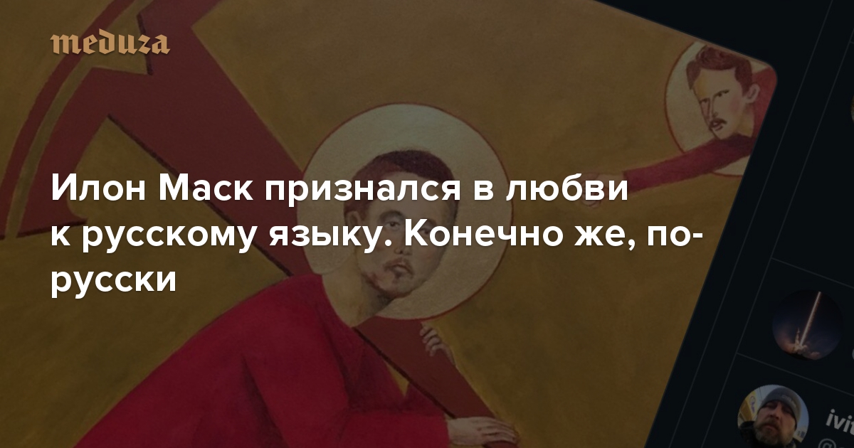 Кто-то написал, что Маск будет удивлен русскому мату (осторожно, в этих сообщениях и правда есть мат). Жители Украины напомнили, что украинский язык ничем не хуже. А лучший ответ, на наш взгляд, дала пользователь LynxLV, показавшая Маску икону с его изображением (впрочем, кажется, Маск ее уже видел).