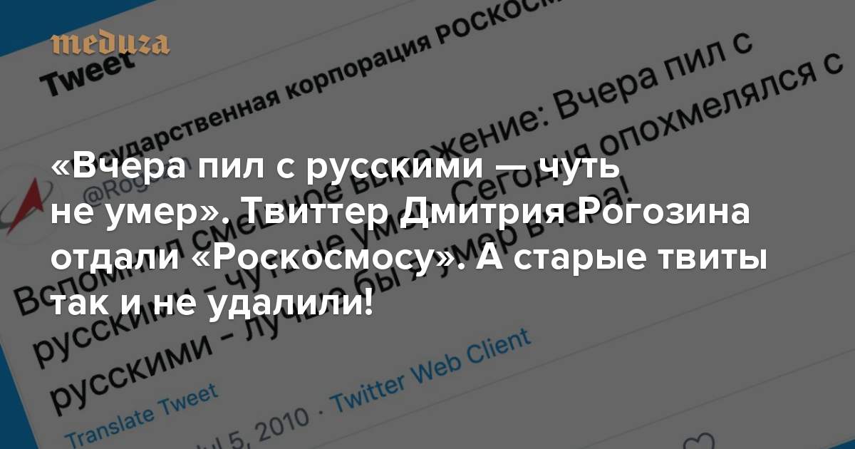 «Вчера пил с русскими — чуть не умер» Твиттер Дмитрия Рогозина отдали «Роскосмосу». А старые твиты так и не удалили!