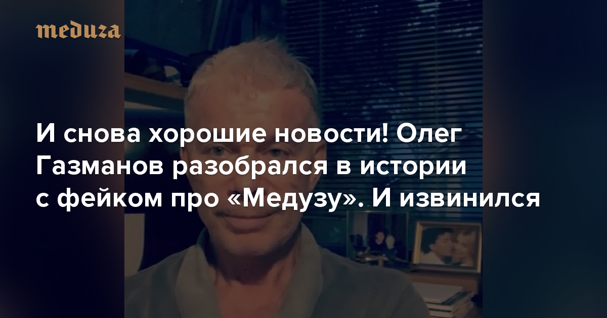 И снова хорошие новости! Олег Газманов разобрался в истории с фейком про «Медузу». И извинился