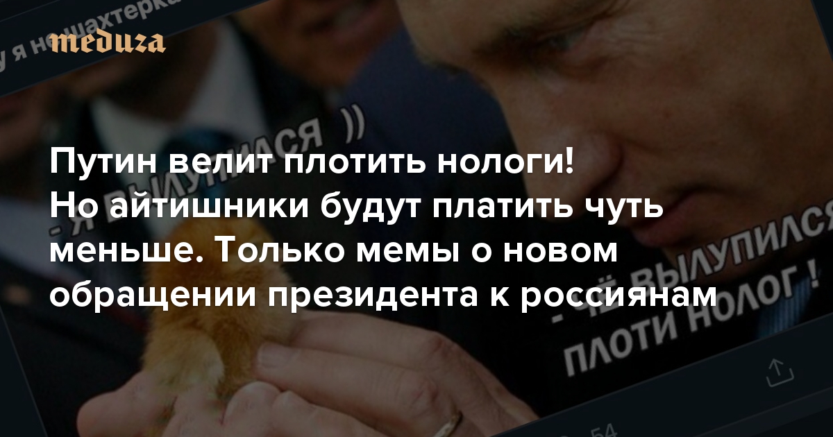 Путин велит плотить нологи! Но айтишники будут платить чуть меньше Только мемы о новом обращении президента к россиянам