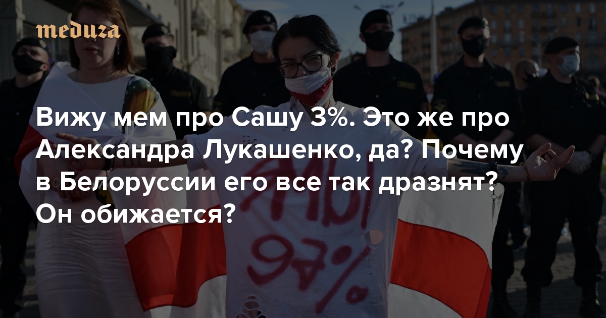 Вижу мем про Сашу 3%. Это же про Александра Лукашенко, да? Почему в Белоруссии его все так дразнят? Он обижается?