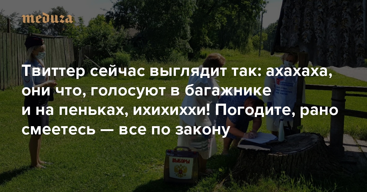 Твиттер сейчас выглядит так: ахахаха, они что, голосуют в багажнике и на пеньках, ихихиххи! Погодите, рано смеетесь — все по закону
