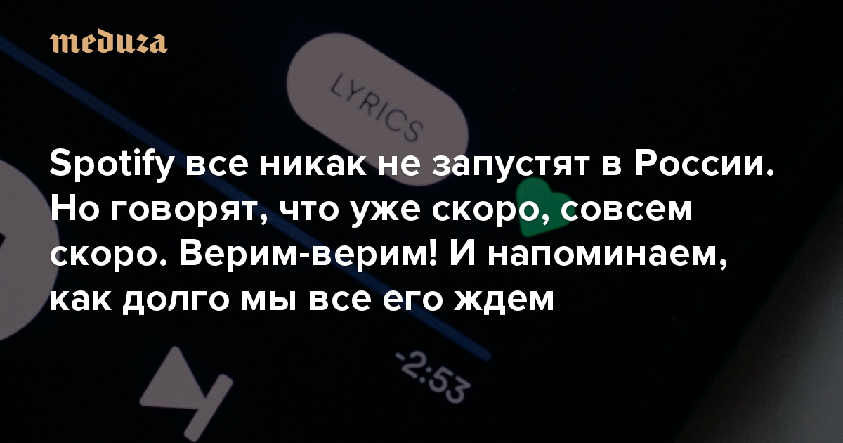 Запуск музыкального стримингового сервиса Spotify в России — это современная версия сказки про мальчика и волка. Из года в год российские издания сообщают, что сервис вот-вот придет на местный рынок. И каждый раз ничего не происходит — то источники подводят, то у самой компании меняются планы (например, из-за коронавируса).