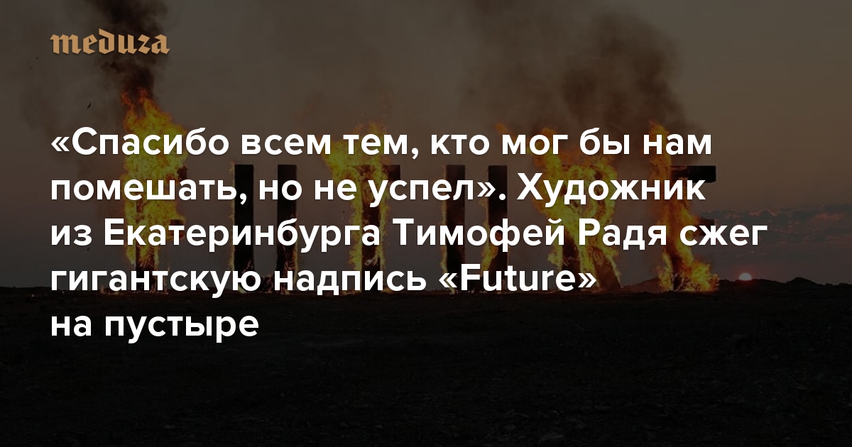 «Спасибо всем тем, кто мог бы нам помешать, но не успел» Художник из Екатеринбурга Тимофей Радя сжег гигантскую надпись «Future» на пустыре