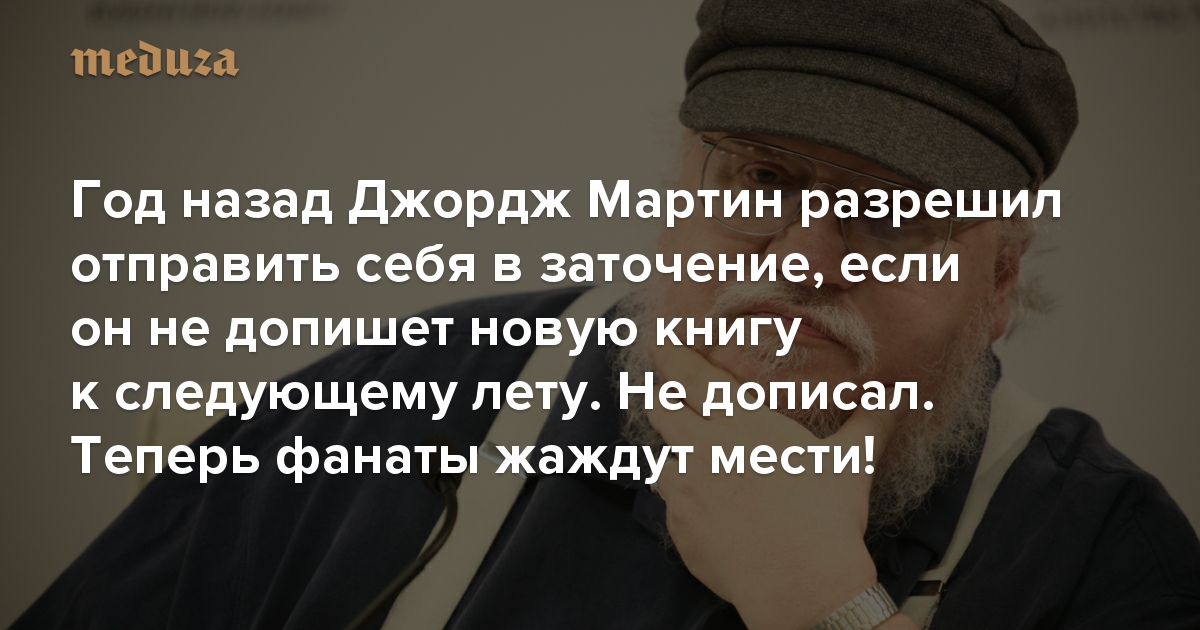 Год назад Джордж Мартин разрешил отправить себя в заточение, если он не допишет новую книгу к следующему лету. Не дописал. Теперь фанаты жаждут мести!