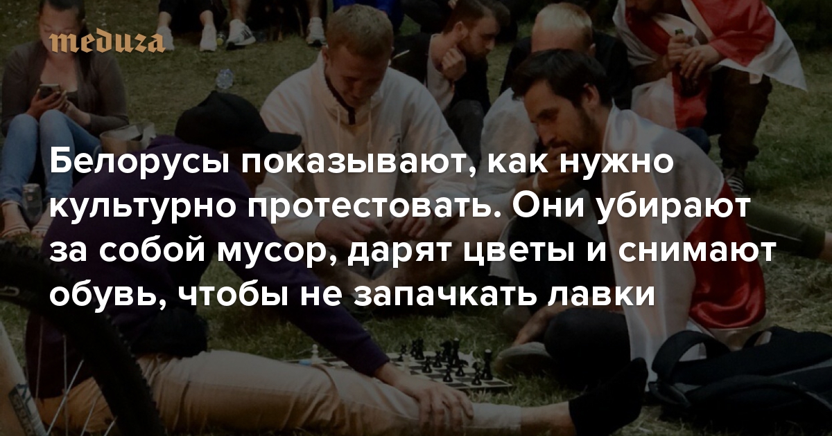 Белорусы показывают, как нужно культурно протестовать. Они убирают за собой мусор, дарят цветы и снимают обувь, чтобы не запачкать лавки