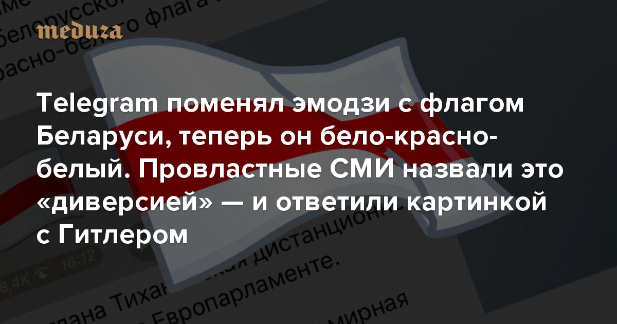 Telegram поменял эмодзи с флагом Беларуси, теперь он бело-красно-белый. Провластные СМИ назвали это «диверсией» — и ответили картинкой с Гитлером