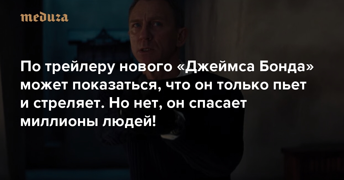 По трейлеру нового «Джеймса Бонда» может показаться, что он только пьет и стреляет. Но нет, он спасает миллионы людей!