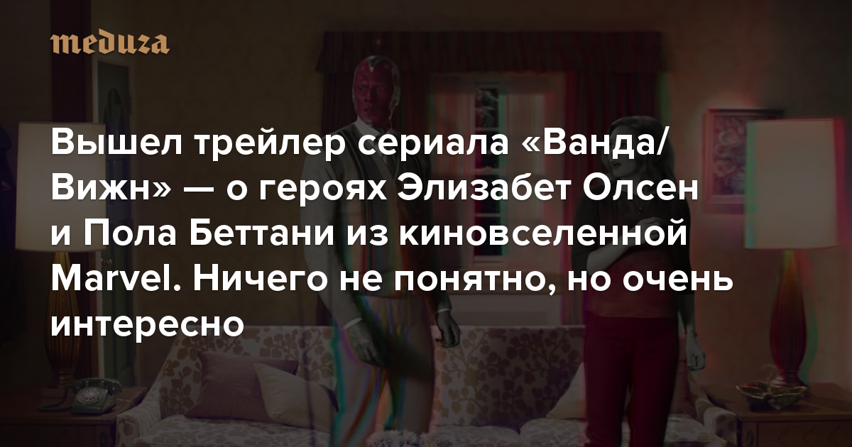 Вышел трейлер сериала «Ванда/Вижн» — о героях Элизабет Олсен и Пола Беттани из киновселенной Marvel. Ничего не понятно, но очень интересно