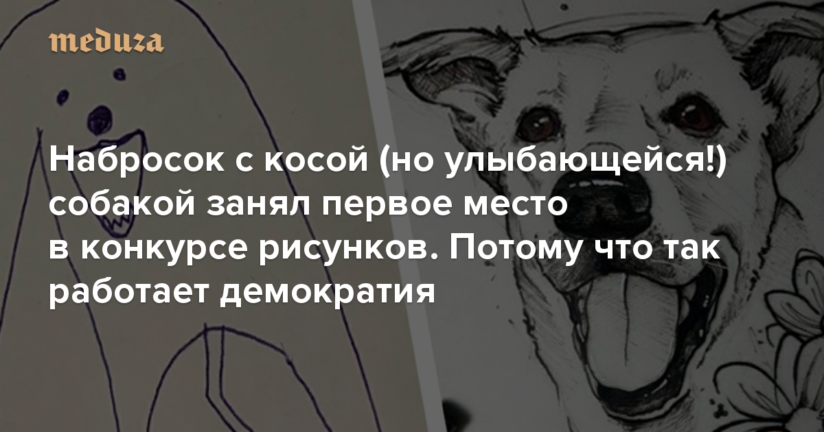 Набросок с косой (но улыбающейся!) собакой занял первое место в конкурсе рисунков. Потому что так работает демократия
