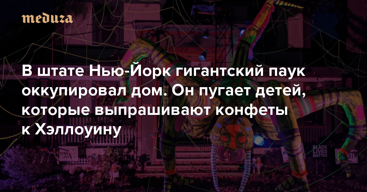 В штате Нью-Йорк гигантский паук оккупировал дом. Он пугает детей, которые выпрашивают конфеты к Хэллоуину