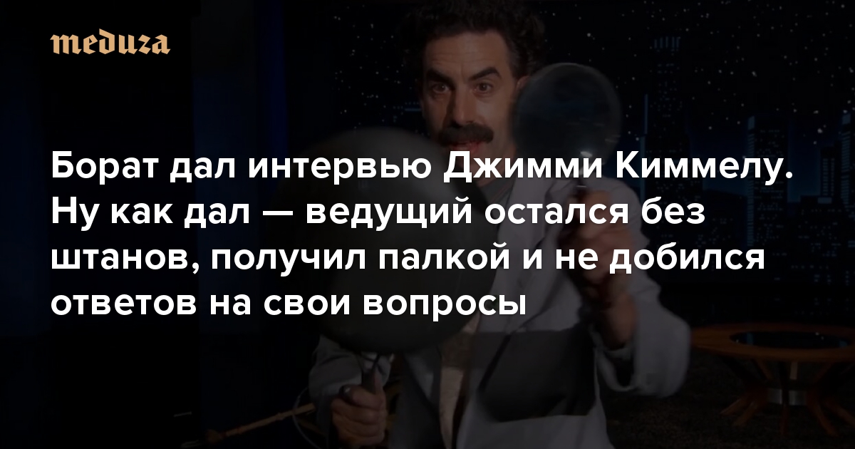 Борат дал интервью Джимми Киммелу. Ну как дал — ведущий остался без штанов, получил палкой и не добился ответов на свои вопросы