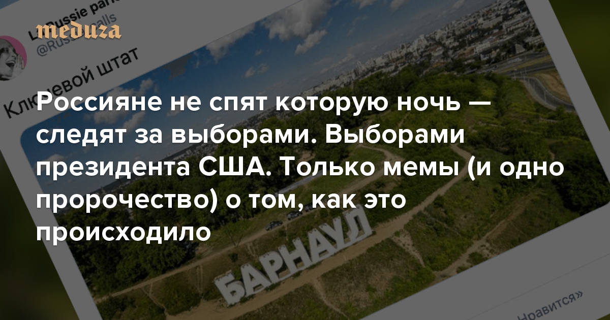Россияне не спят которую ночь — следят за выборами. Выборами президента США. Только мемы (и одно пророчество) о том, как это происходило