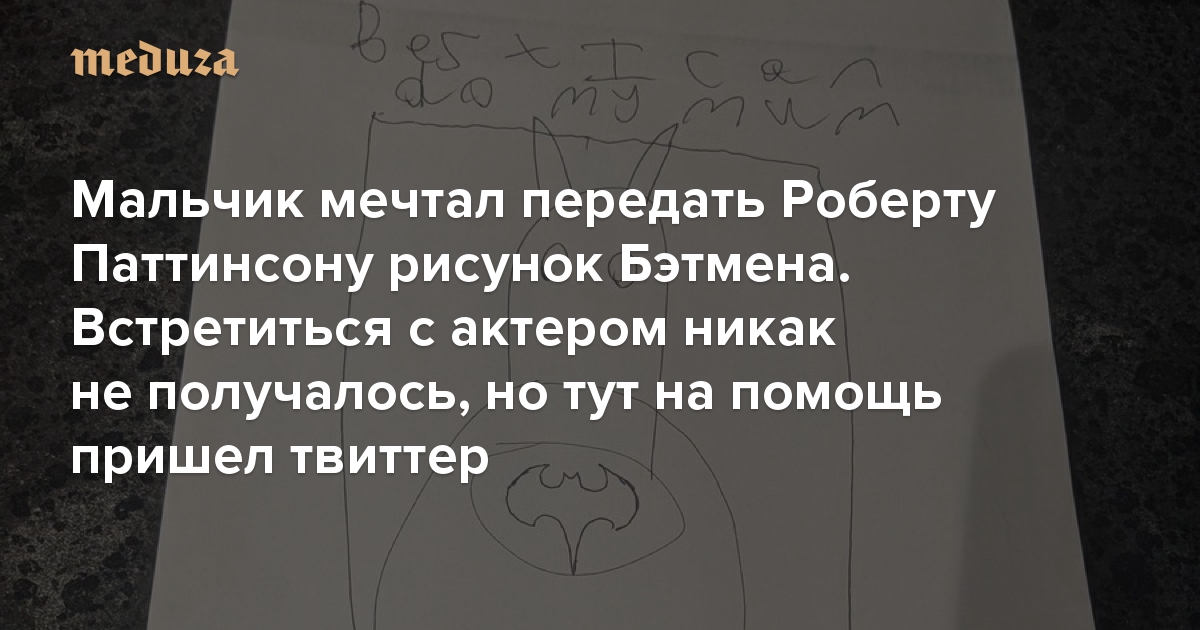 Мальчик мечтал передать Роберту Паттинсону рисунок Бэтмена. Встретиться с актером никак не получалось, но тут на помощь пришел твиттер