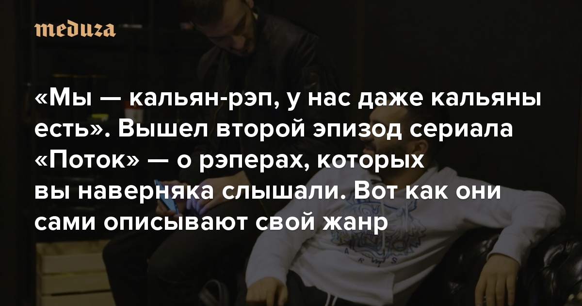«Мы — кальян-рэп, у нас даже кальяны есть» Вышел второй эпизод документального сериала «Поток» — о рэперах, которых вы наверняка слышали. Вот как они сами описывают свой жанр