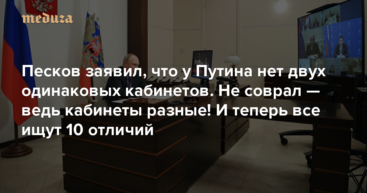 Песков заявил, что у Путина нет двух одинаковых кабинетов. Не соврал — ведь кабинеты разные! И теперь все ищут 10 отличий