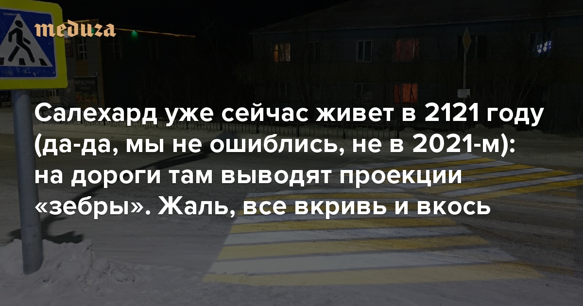Салехард уже сейчас живет в 2121 году (да-да, мы не ошиблись, не в 2021-м): на дороги там выводят проекции «зебры». Жаль, все вкривь и вкось