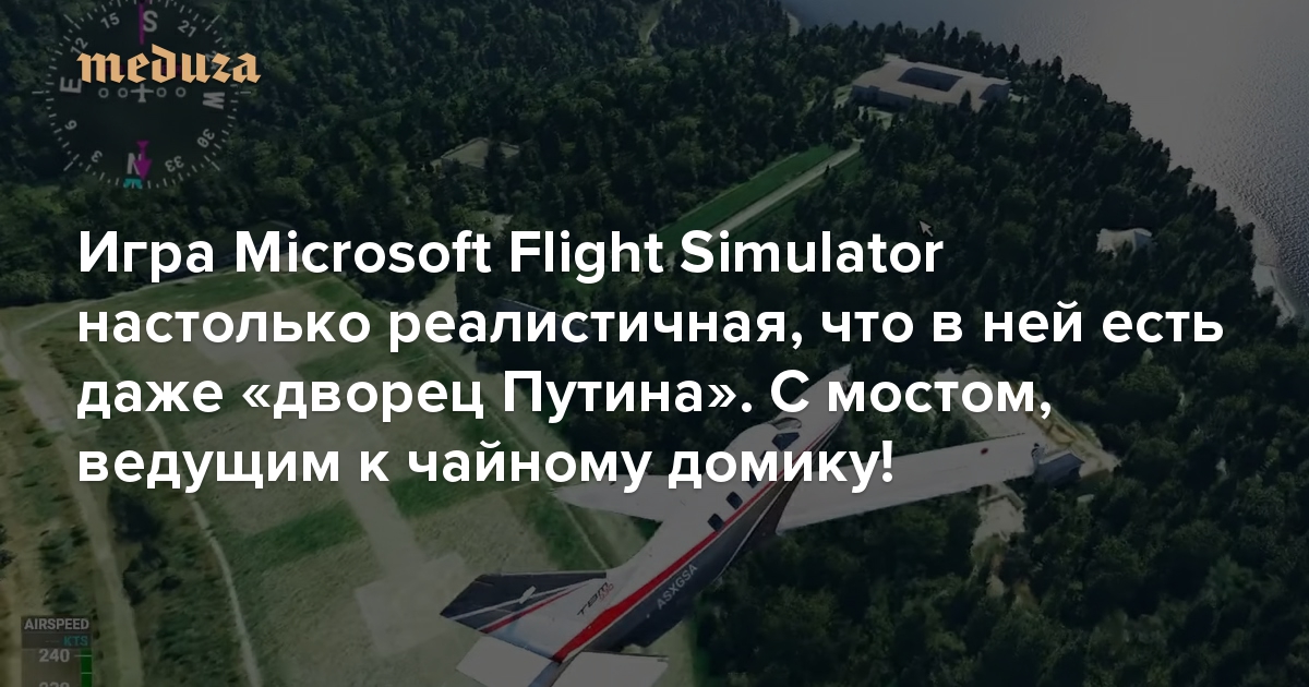 Игра Microsoft Flight Simulator настолько реалистичная, что в ней есть даже «дворец Путина». С мостом, ведущим к чайному домику!