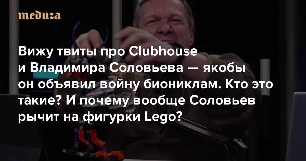 Вижу твиты про Clubhouse и Владимира Соловьева — якобы он объявил войну биониклам Кто это такие? И почему вообще Соловьев рычит на фигурки Lego?