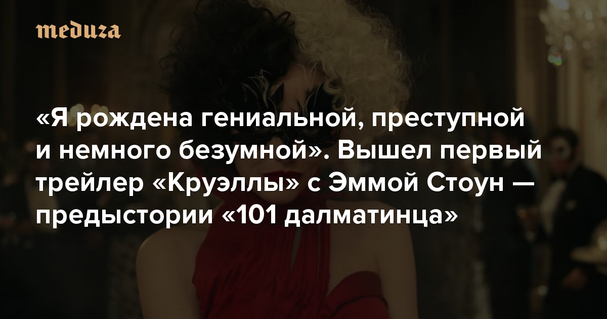 «Я рождена гениальной, преступной и немного безумной» Вышел первый трейлер «Круэллы» с Эммой Стоун — предыстории «101 далматинца»