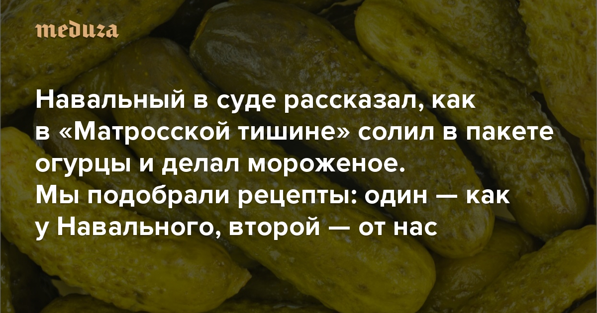 Навальный в суде рассказал, как в «Матросской тишине» солил в пакете огурцы и делал мороженое Мы подобрали рецепты: один — как у Навального, второй — от нас