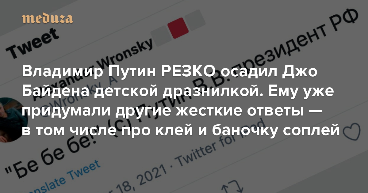 Владимир Путин РЕЗКО осадил Джо Байдена детской дразнилкой. Ему уже придумали другие жесткие ответы — в том числе про клей и баночку соплей