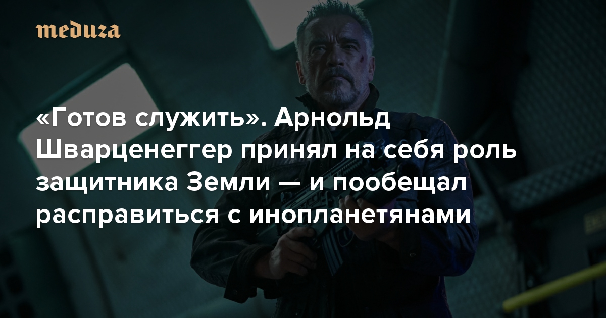 «Готов служить». Арнольд Шварценеггер принял на себя роль защитника Земли — и пообещал расправиться с инопланетянами