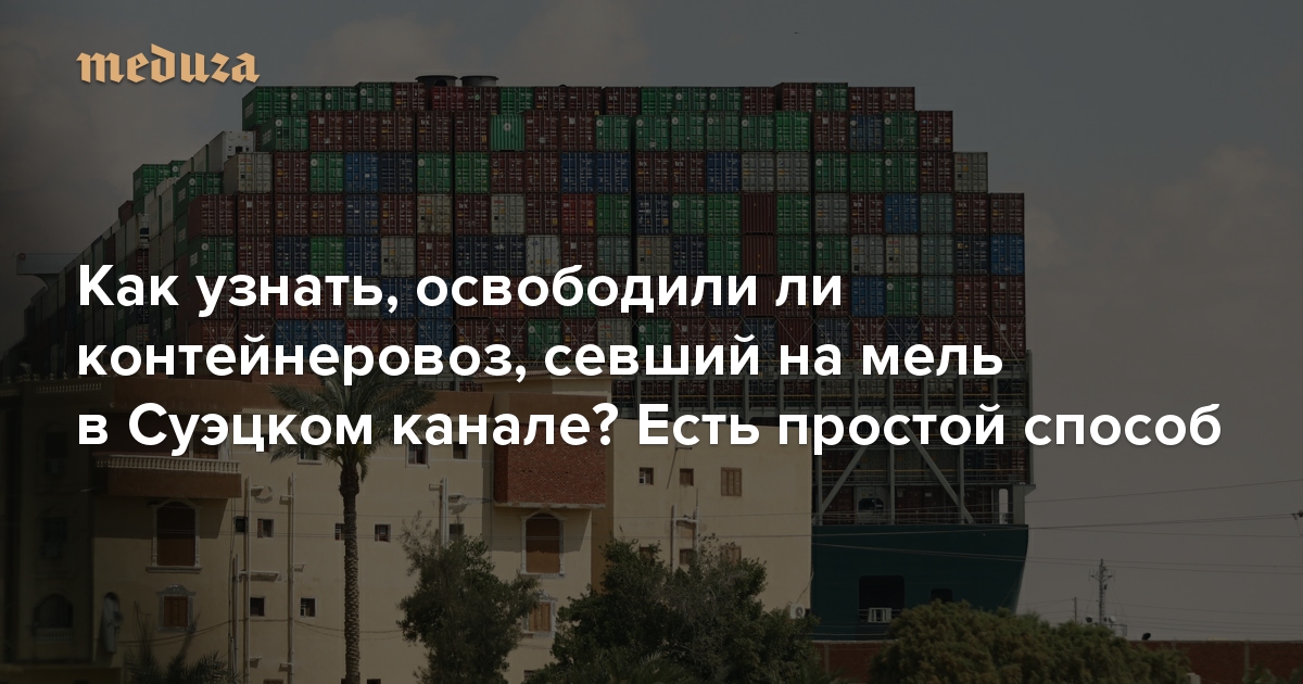 Как узнать, освободили ли контейнеровоз, севший на мель в Суэцком канале? Есть простой способ