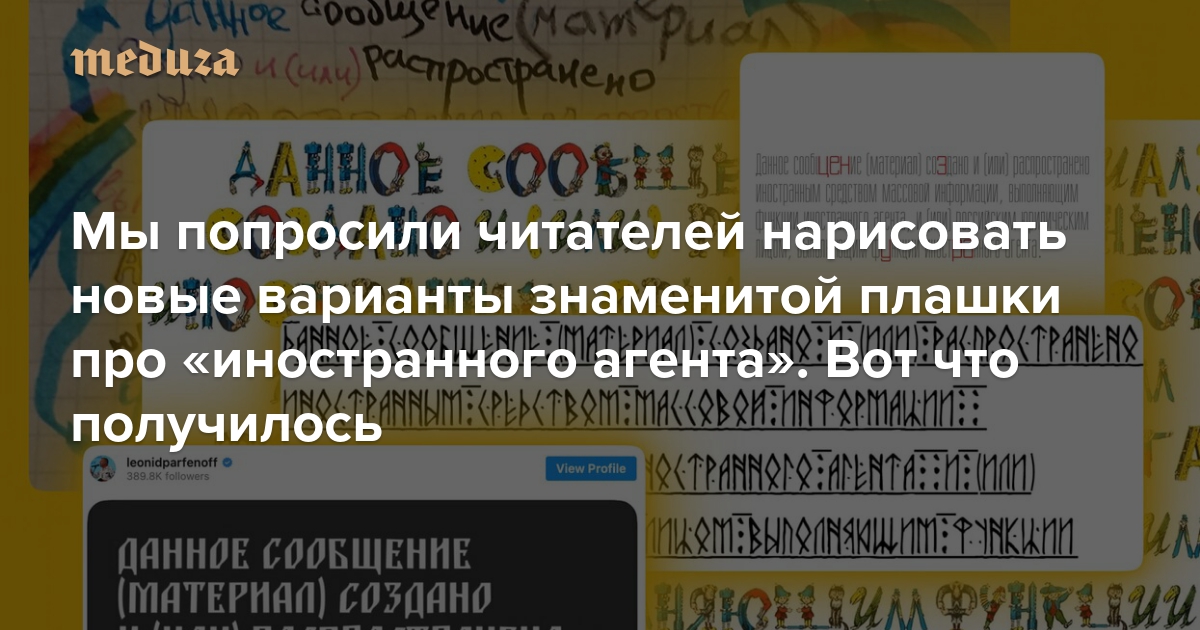 Мы попросили читателей нарисовать новые варианты знаменитой плашки про «иностранного агента». Вот что получилось Спойлер: это фантастика