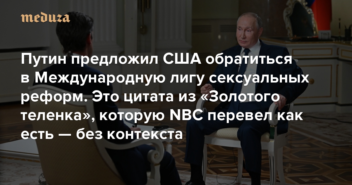 Путин предложил США обратиться в Международную лигу сексуальных реформ. Это цитата из «Золотого теленка», которую NBC перевел как есть — без контекста